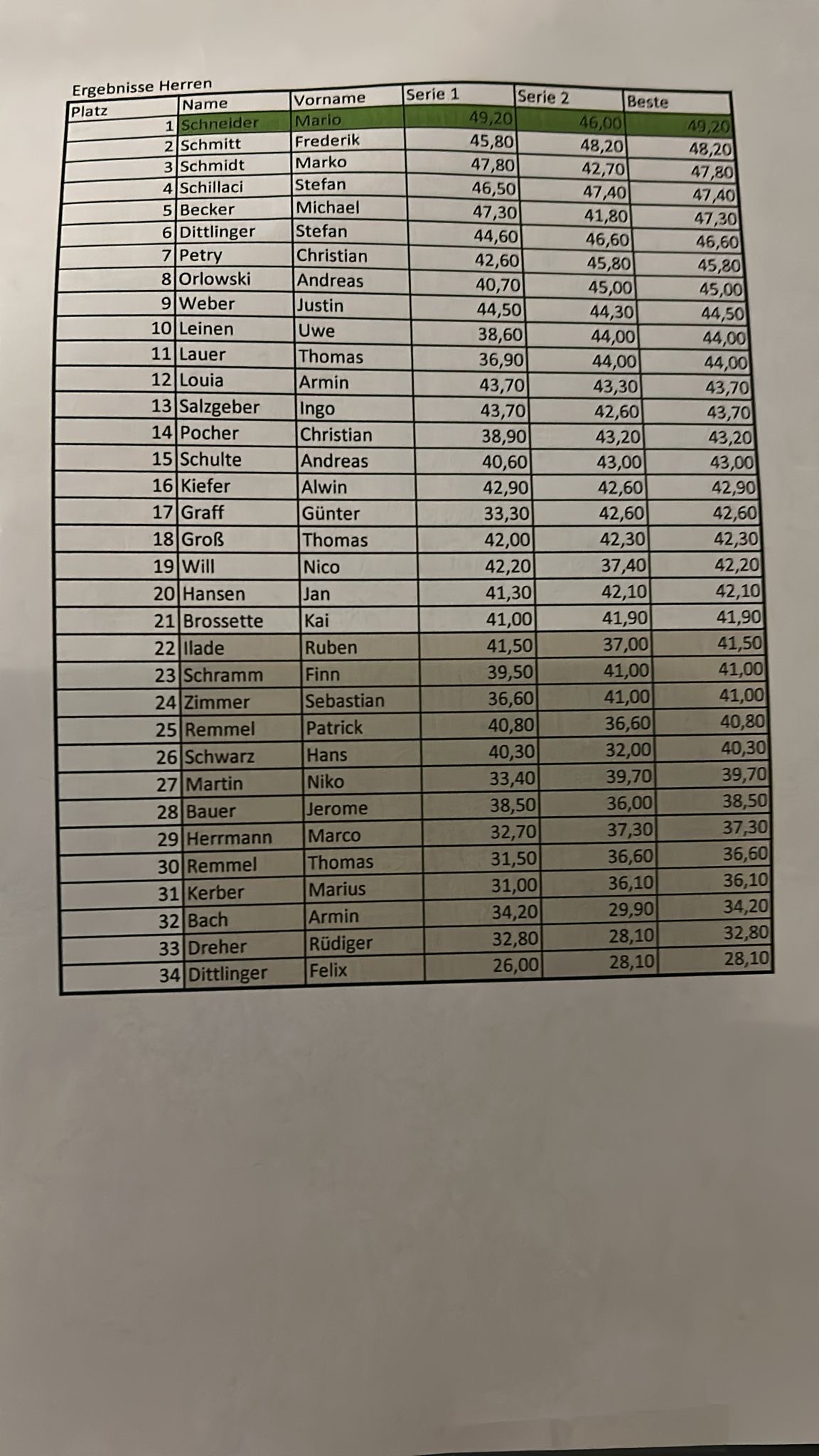 Ergebnisliste Herren 27-09-25 Veröffentlicht 29. September 2025 um 1152 × 2048 in Ergebnisse Gemeindepokalschießen 27.09.2025 ← Vorheriger / Ergebnisliste Herren