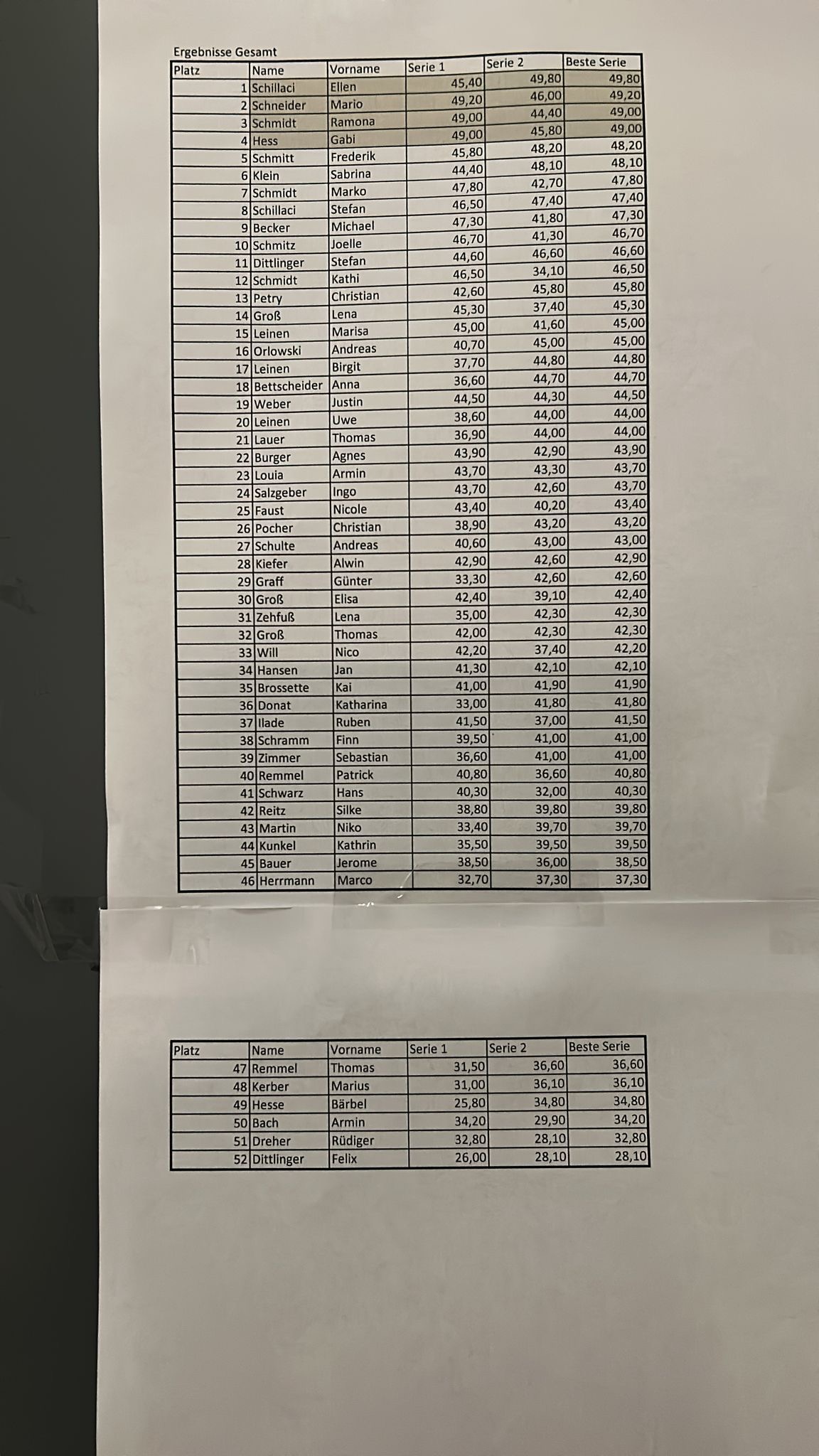 Gesamt Ergebnisliste 27-09-25 Veröffentlicht 29. September 2025 um 1152 × 2048 in Ergebnisse Gemeindepokalschießen 27.09.2025 ← Vorheriger / Nächster → Ergebnisliste Gesamt